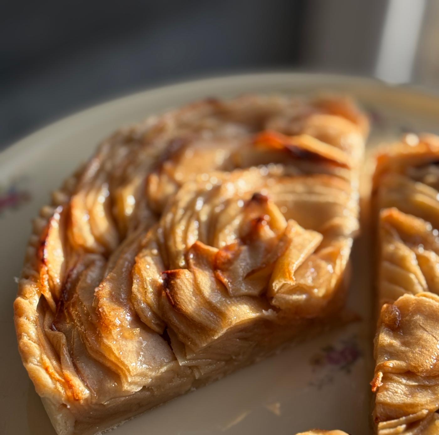Une tarte aux pommes dorée et parfumée, préparée avec une pâte sucrée vanillée et fondante à la fois. Garnie de fines tranches de pommes légèrement caramélisées, elle offre un équilibre parfait entre douceur et acidité. Un grand classique revisité avec une pointe de gingembre qui réveille de délicieux souvenirs d’enfance…